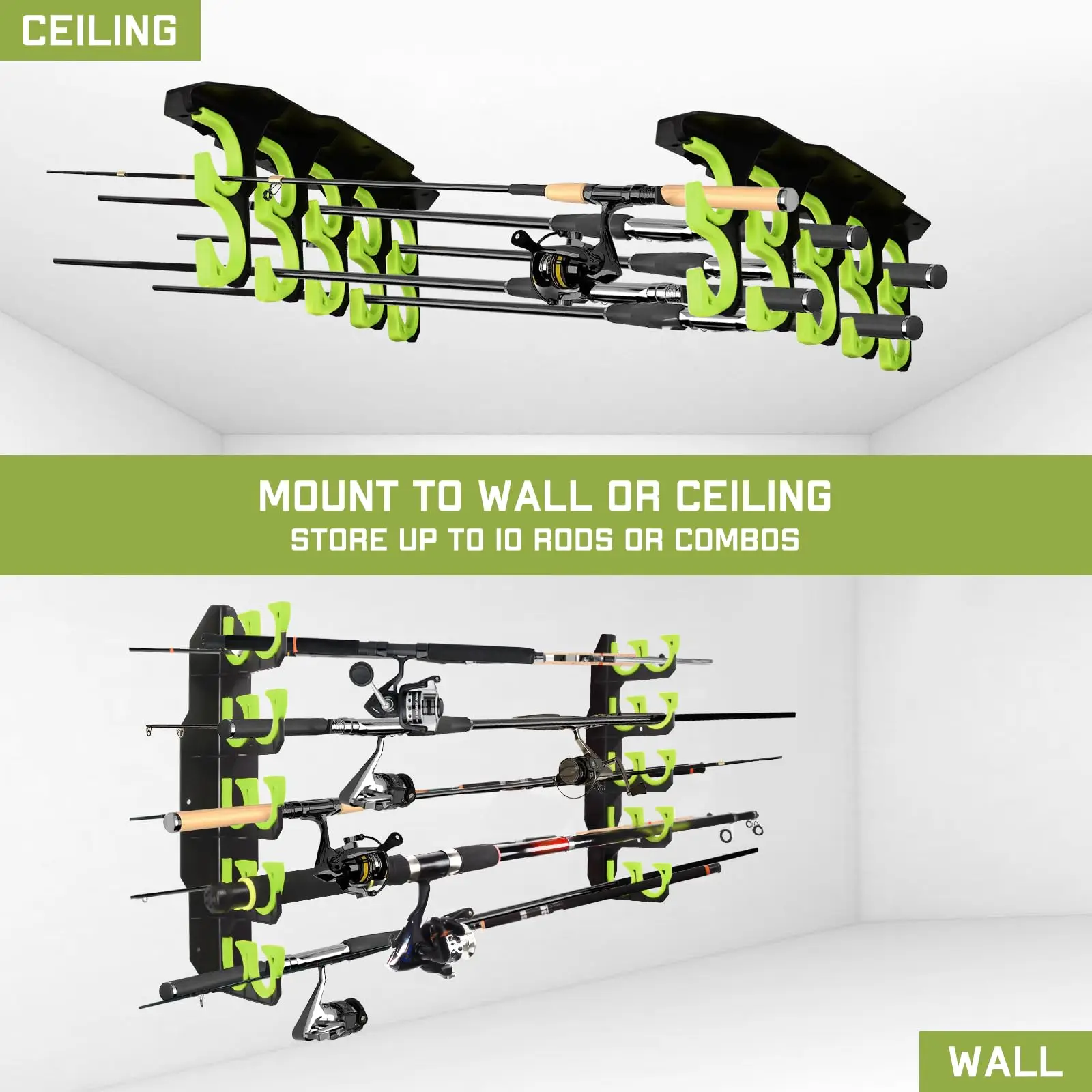 Store your fishing rods safely and neatly with this garage organizer. Durable and easy to install, it keeps your gear accessible, tangle-free, and protected.